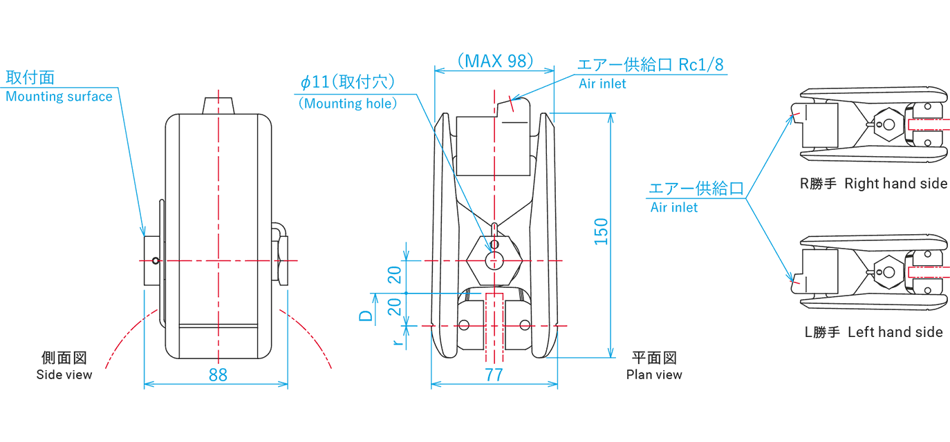 - Working Air Pressure : 0.05 to 0.7 MPa